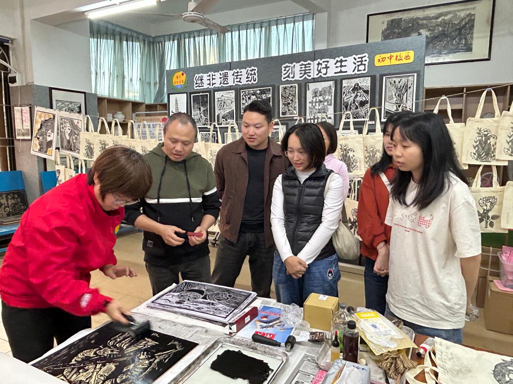 图|前往高州中学初中部参观非遗木刻画制作